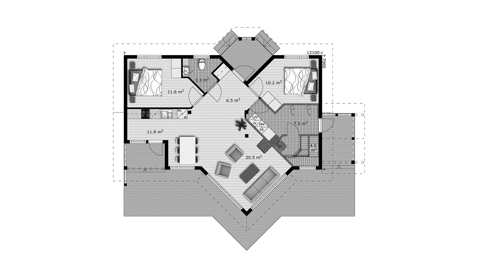 Нетрадиционный облик дома Ярвикарху передаёт его внутреннюю атмосферу. Его высокофункциональный дизайн привносит нотку шика.Все комнаты просторны, и в них можно спокойно уединиться. Дом спланирован таким образом, чтобы вы получали больше света