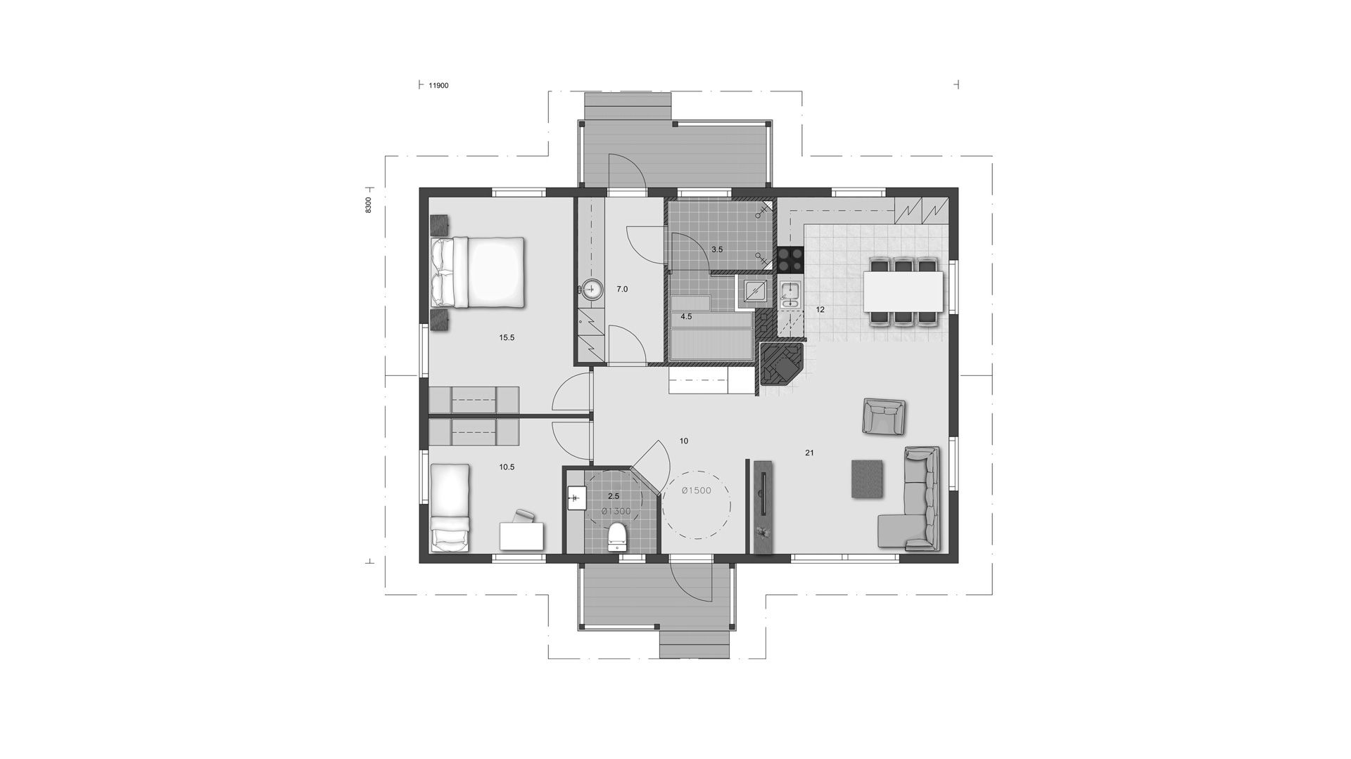 Kalela – это отличный компактный семейный дом. Наличие двух спален обеспечивает комфортное расположение для всех членов семьи. Кухня, столовая и гостиная в доме объединены в единое целое пространство, что позволит проводить больше времени св кругу близких людей.