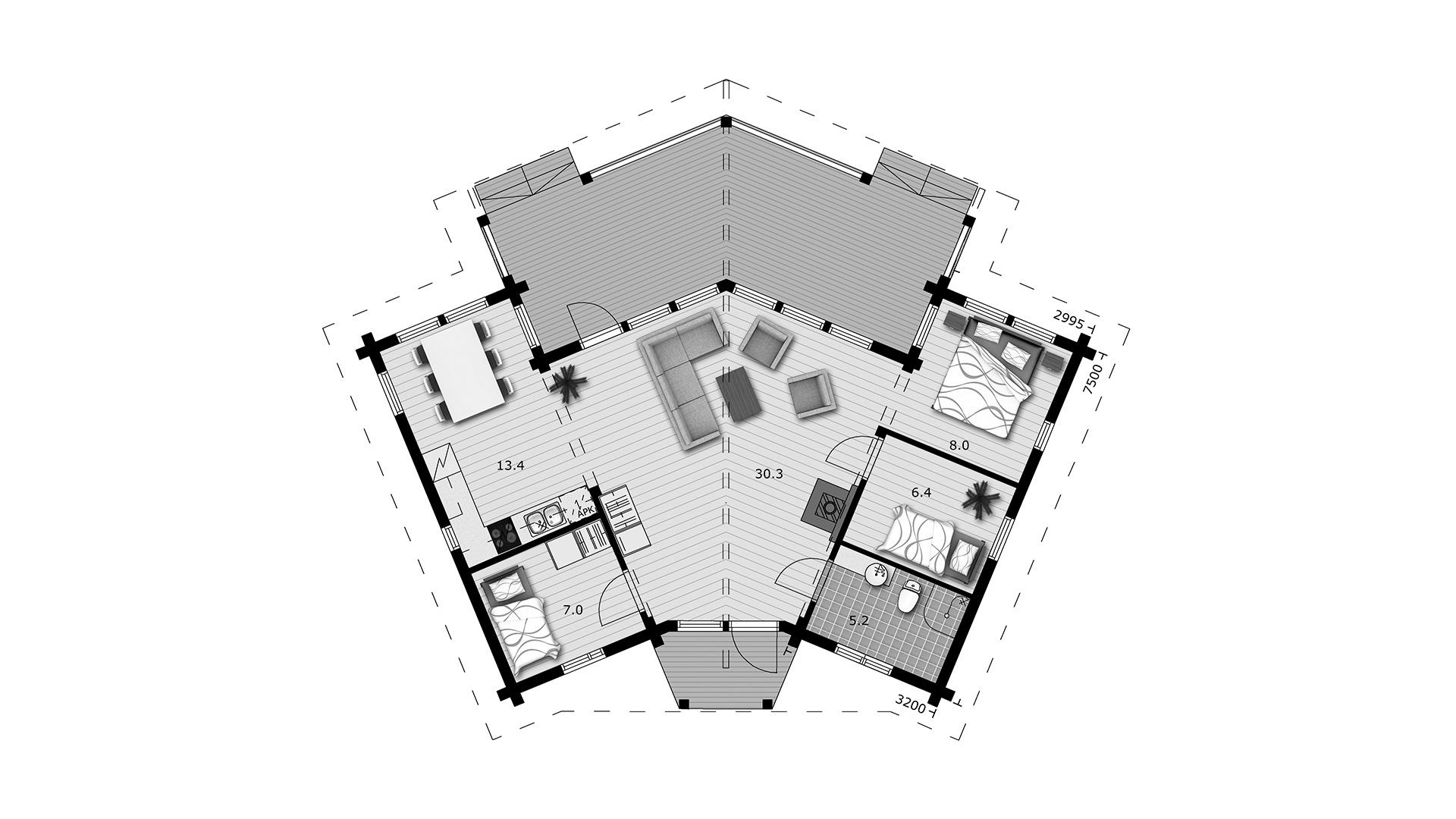 Бревенчатая вилла Nuuna кажется внутри намного больше, чем указано в цифрах - это такая просторная и светлая вилла! Версия виллы Nuuna площадью 85 квадратных метров была признана лучшим проектом загородного дома на Ярмарке недвижимости в Финляндии в 2011 году!