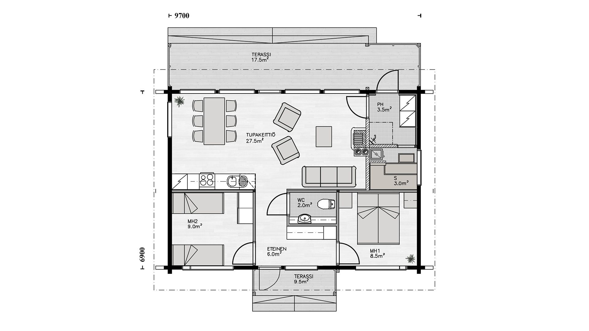 Бревенчатый дом Pes вас приятно удивит. При входе через входную дверь из окон гостиной открывается прямой вид на окружающую природу. Благодаря большим окнам, помещения полностью наполняются естественным светом.