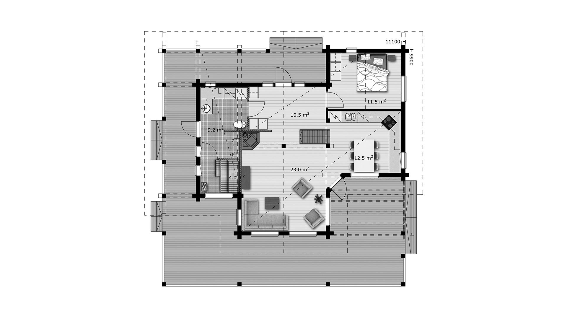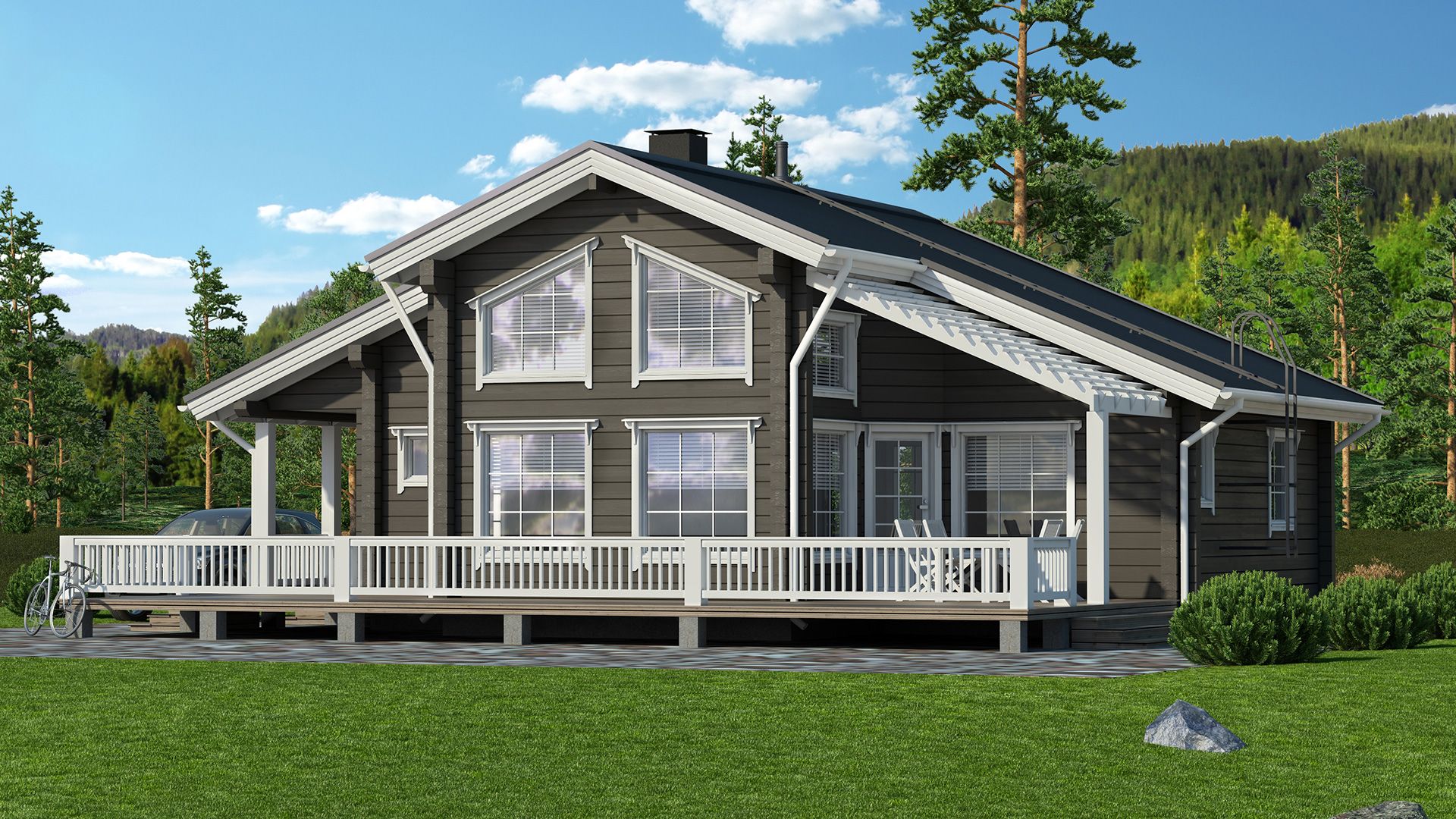 Деревянный дом Tolva - это просторный и элегантный дом для отпуска. Яркость и ощущение пространства еще больше подчеркивается высотой гостиной и многочисленными окнами. Терраса просторная и продолжается почти по вокруг всего дома.
