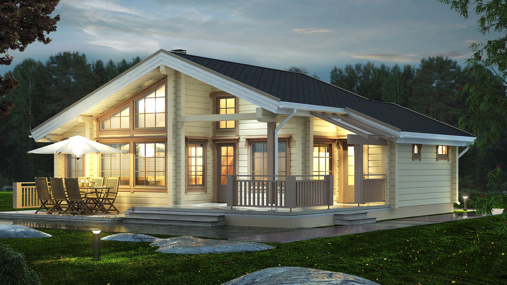 Деревянный дом Ukkola имеет интересную планировку этажей, которая обеспечивает свет и виды на жилые помещения со всех сторон. Гостиная в доме просторная благодаря большой высоте помещения. На большой передней террасе достаточно места для барбекю и обеденного стола.