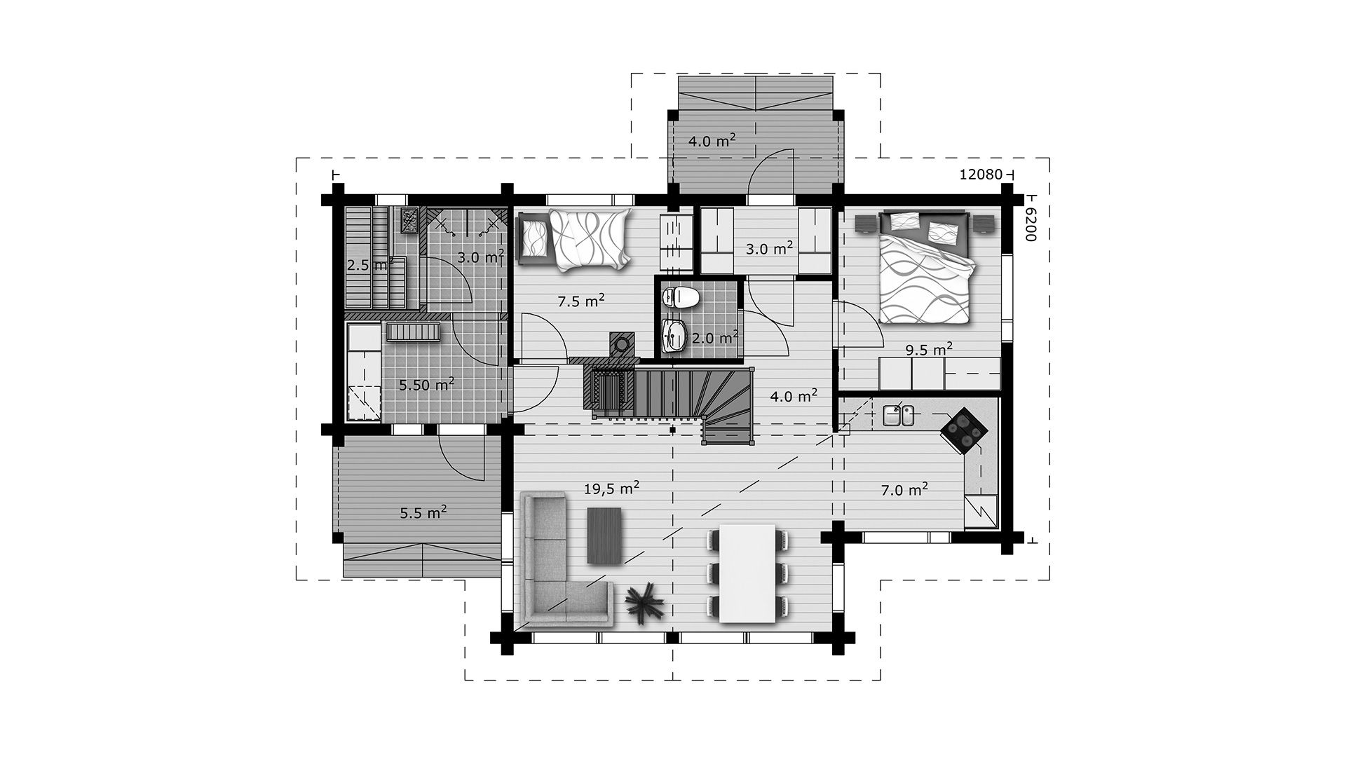 Классический уютный финский дом прекрасно подойдет для любителей загородной жизни. Этот дом впечатляет количеством естественного света, который несут большие широкие окна. А наличие трёх спален обеспечит кофмортное размещение для большой семьи или гостей.