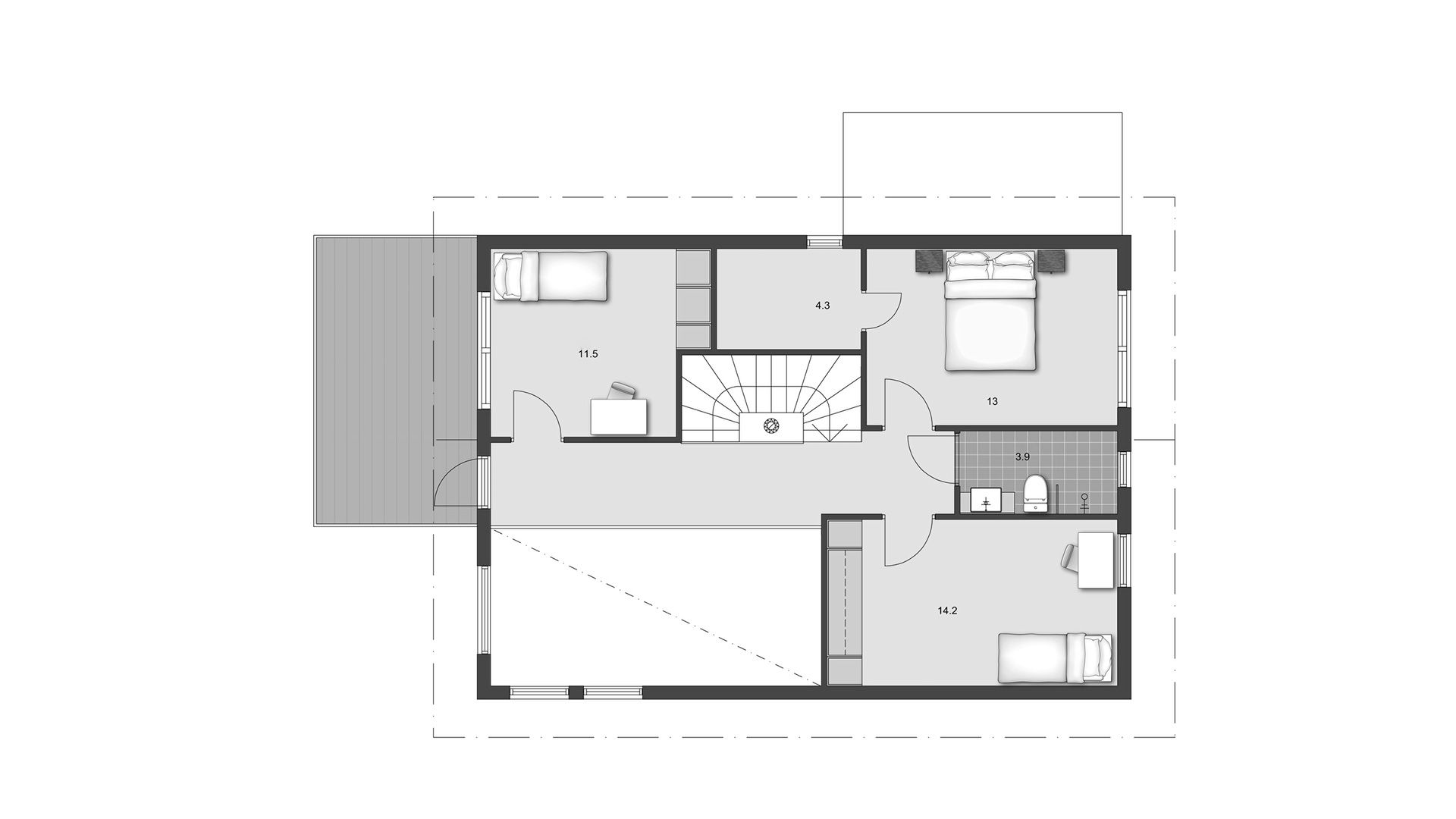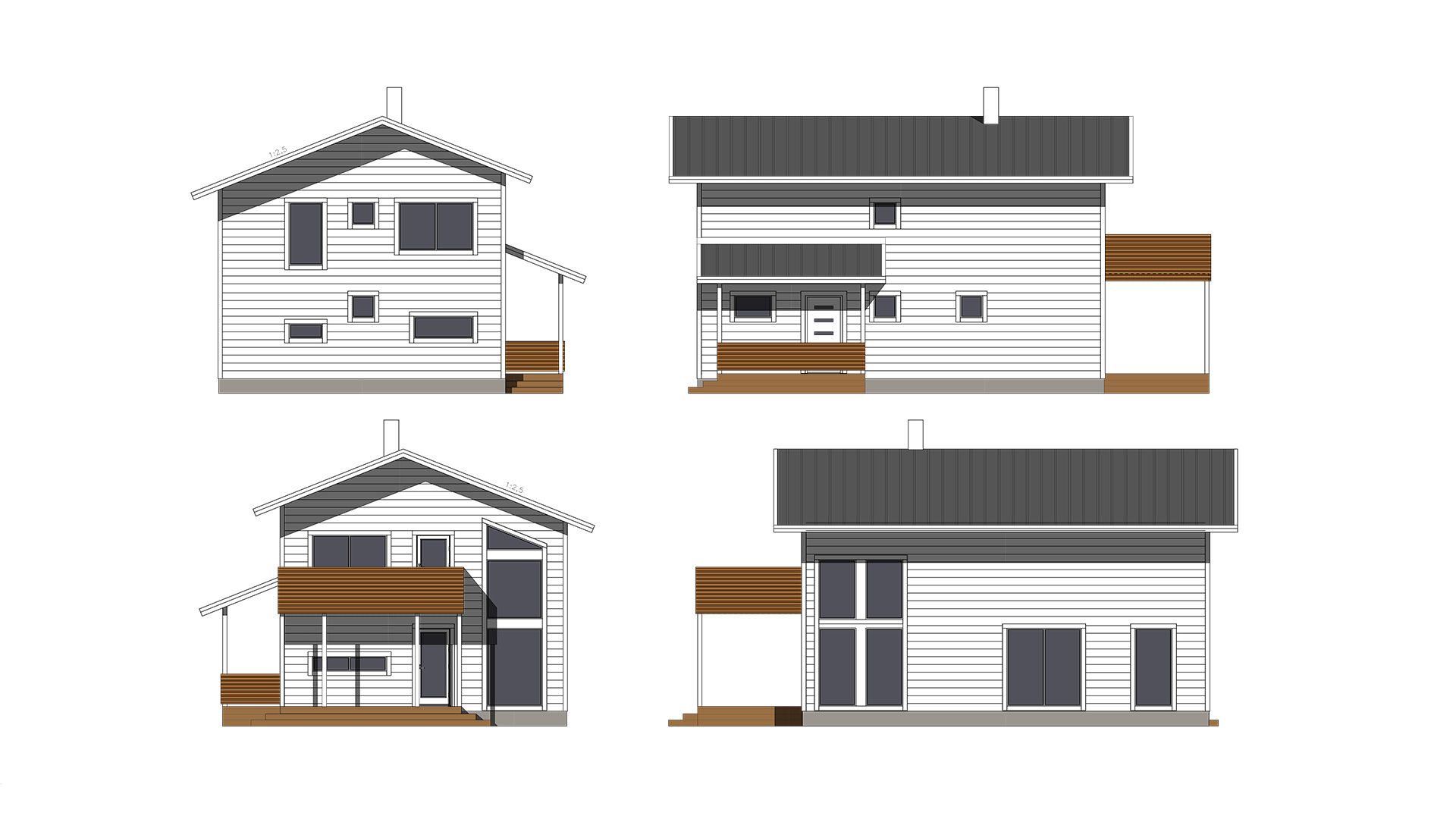 Это функциональный и современный бревенчатый дом, который можно построить даже на небольшом участке.