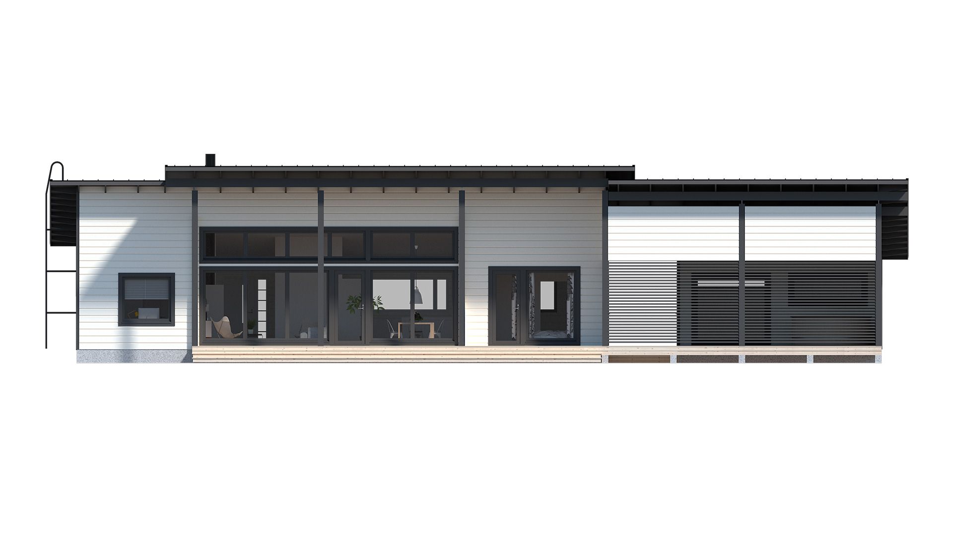 Все началось с идеи куба. У куба было множество стеклянных поверхностей. Внутри куба гостиная, кухня и столовая находятся в одном и том же открытом пространстве. В результате, появился бревенчатый дом уникального вида.