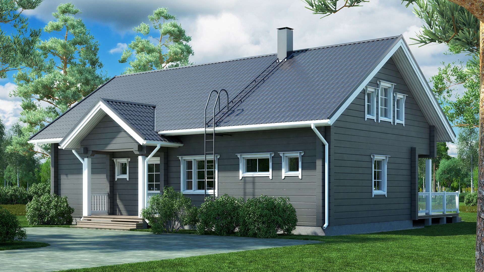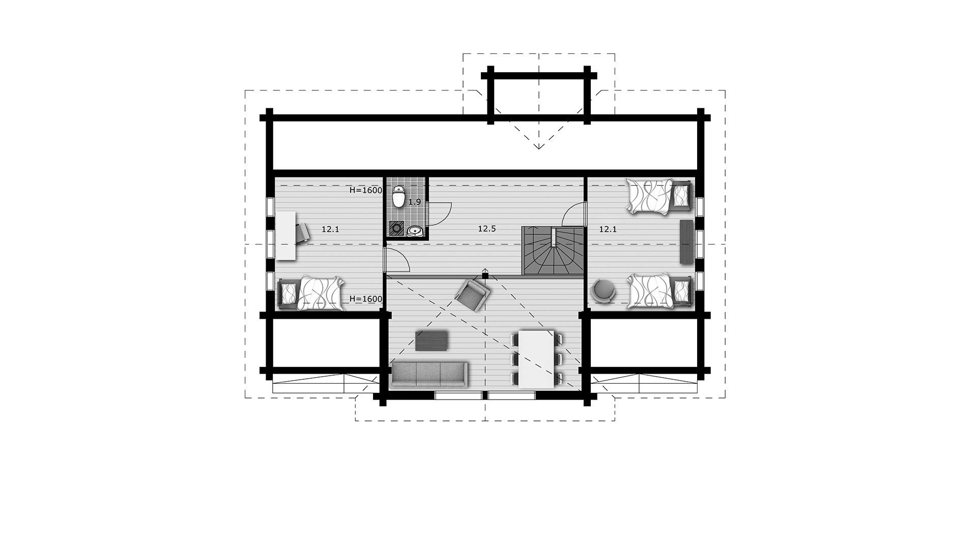 Первоначально был спроектирован как дача для большой семьи. Но превосходно подходит в качестве отдельного дома для круглогодичного проживания.