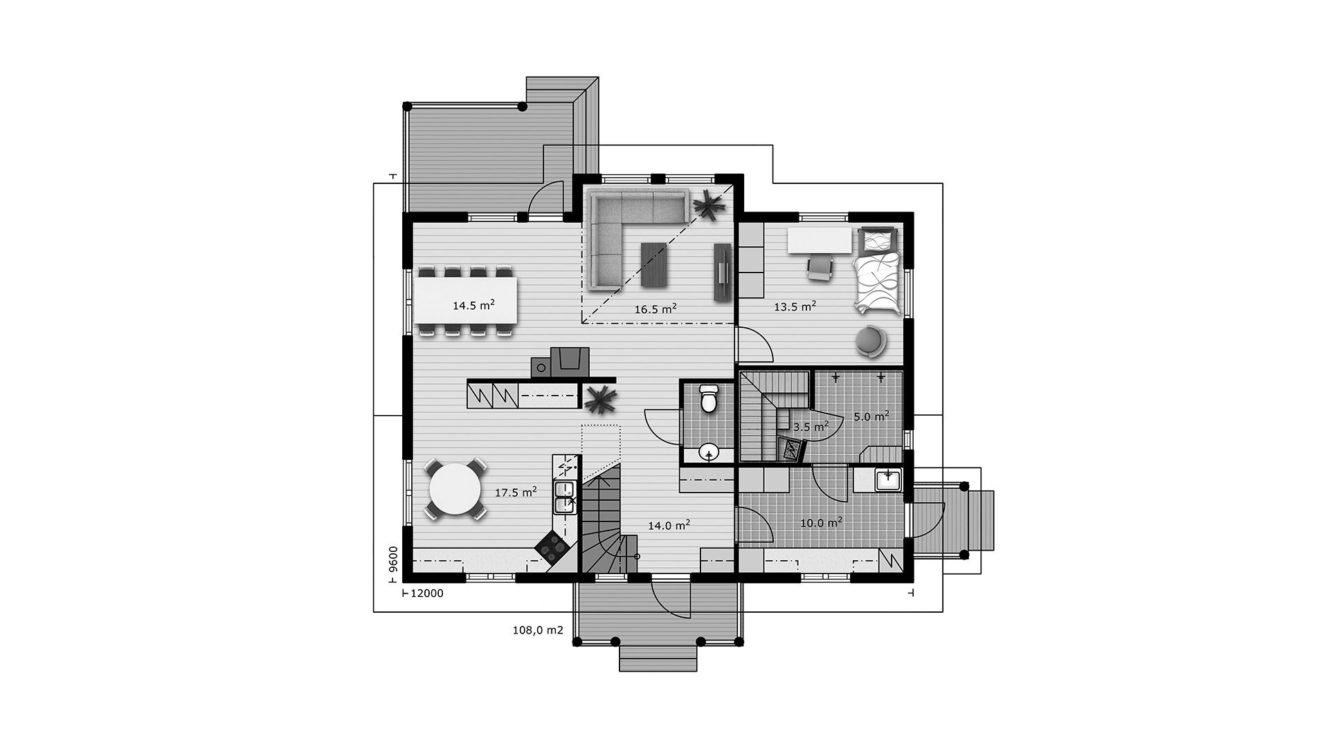 Потрясающий дом с четырьмя спальнями. Обратите внимание на высокие потолки гостиной, которые обеспечивает свет и ощущение пространства в комнате.