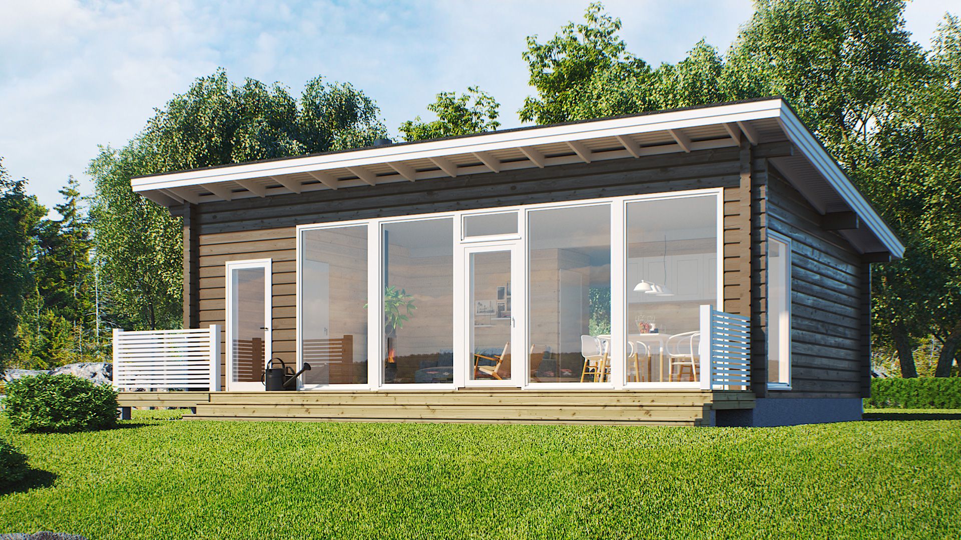 Бревенчатый дом Pes вас приятно удивит. При входе через входную дверь из окон гостиной открывается прямой вид на окружающую природу. Благодаря большим окнам, помещения полностью наполняются естественным светом.