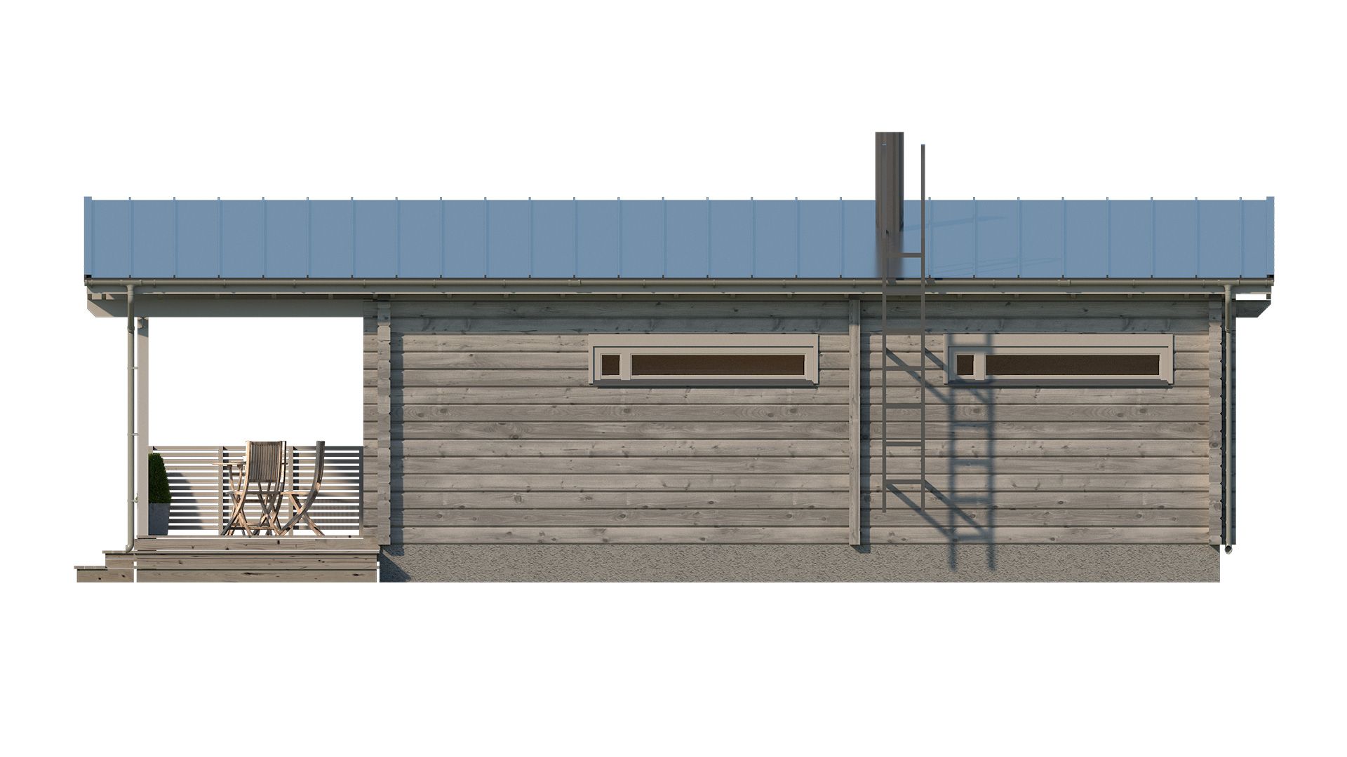 Невероятно большие окна деревянного дома Piste открываются на две стороны. Крытая терраса обеспечивает приятное времяпрепровождение и единение с природой.