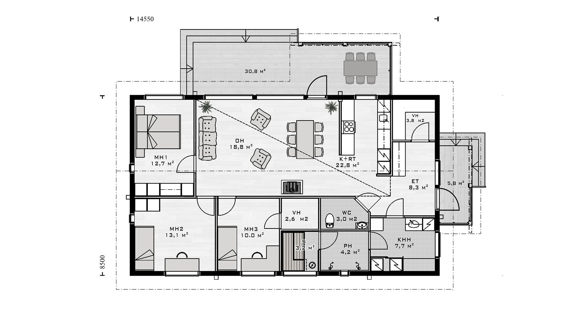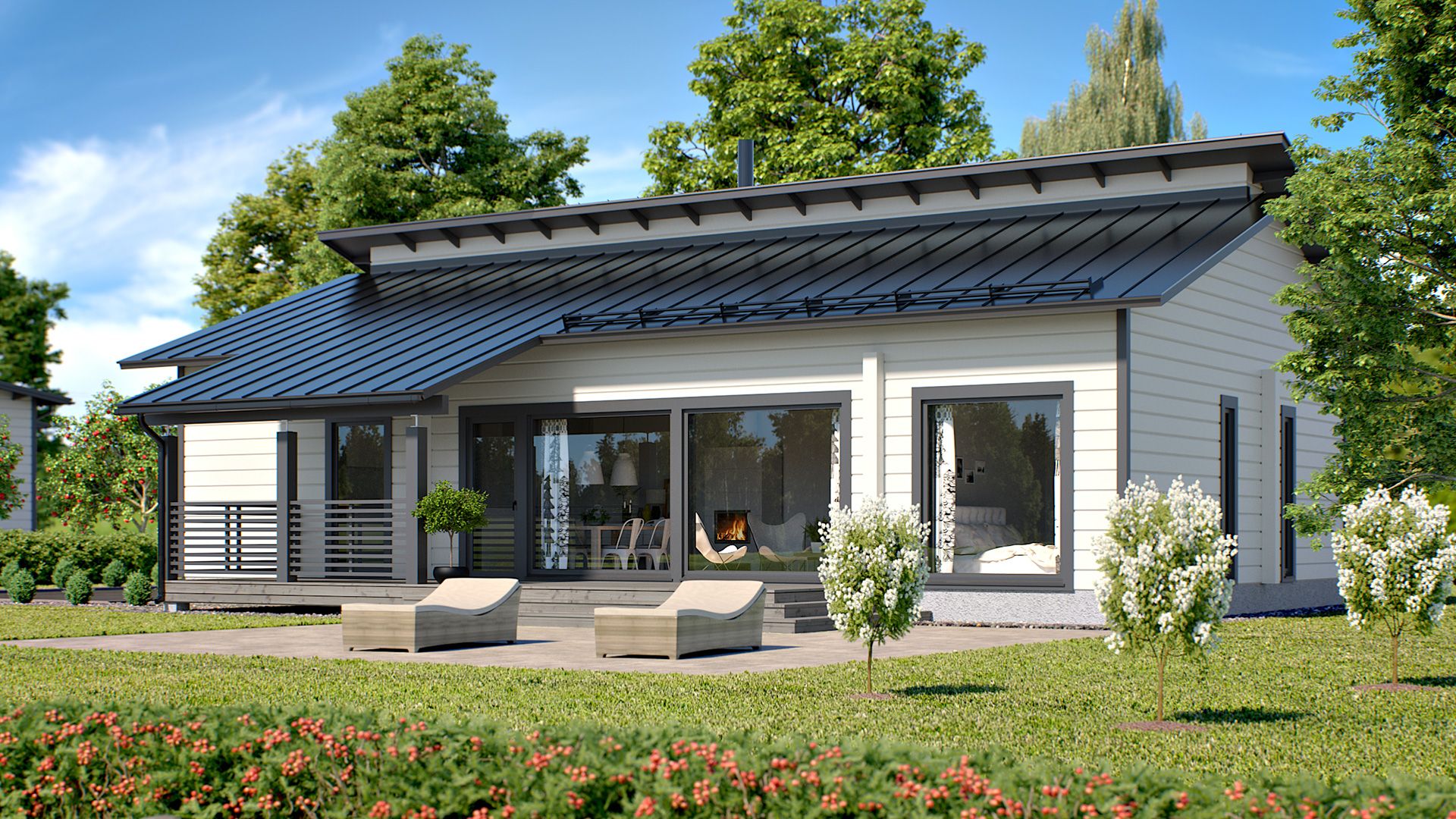 Все началось с идеи куба. У куба было множество стеклянных поверхностей. Внутри куба гостиная, кухня и столовая находятся в одном и том же открытом пространстве. В результате, появился бревенчатый дом уникального вида.
