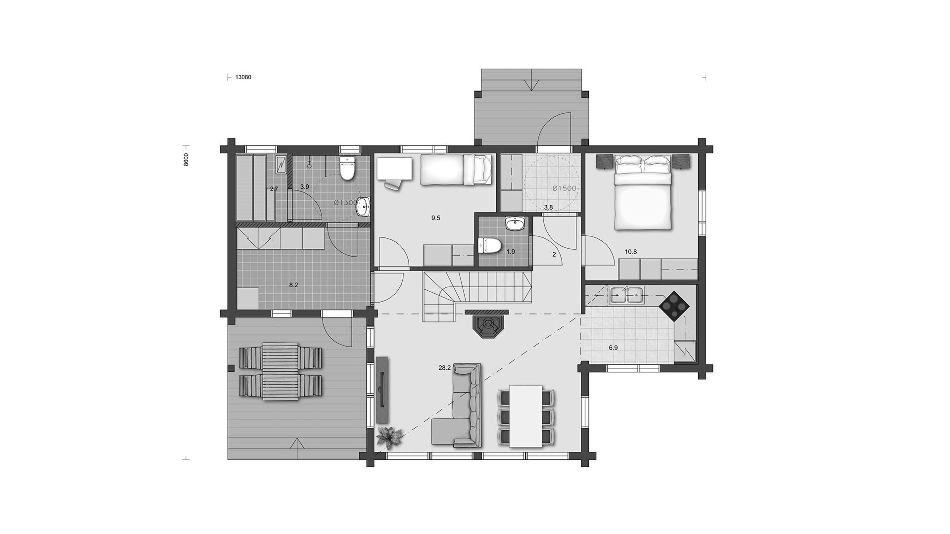 Alppila 128 источает дух мудрого бревенчатого дома. Открытое пространство гостиной / обеденной зоны, доходящей до потолка, позволяет использовать большую площадь окон. Благодаря большим окнам природа вокруг становится частью быта.