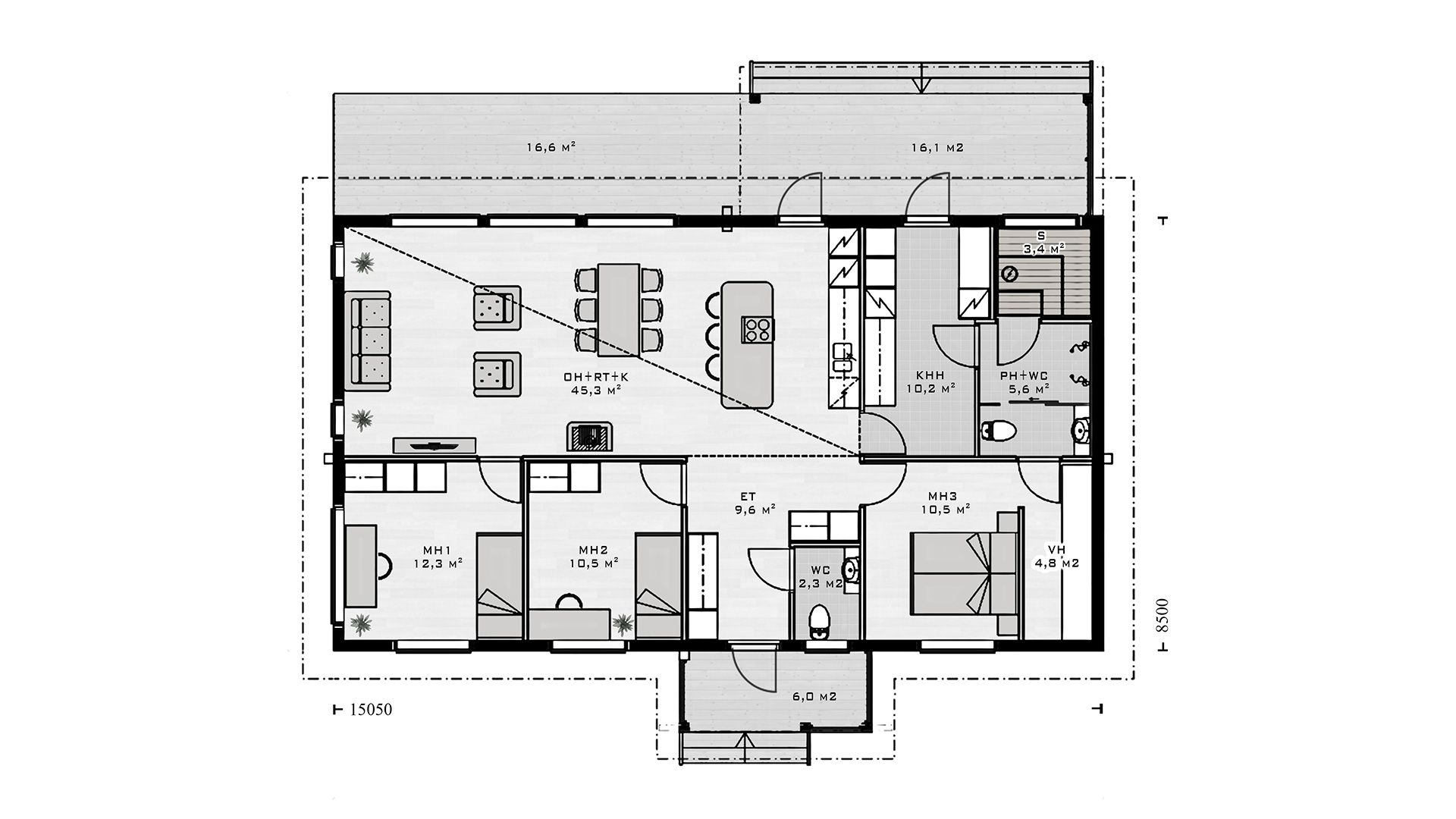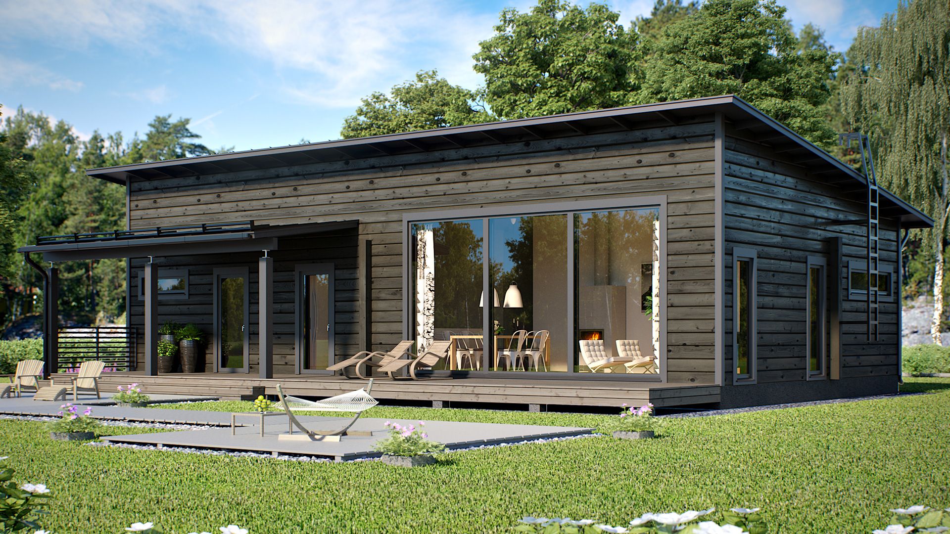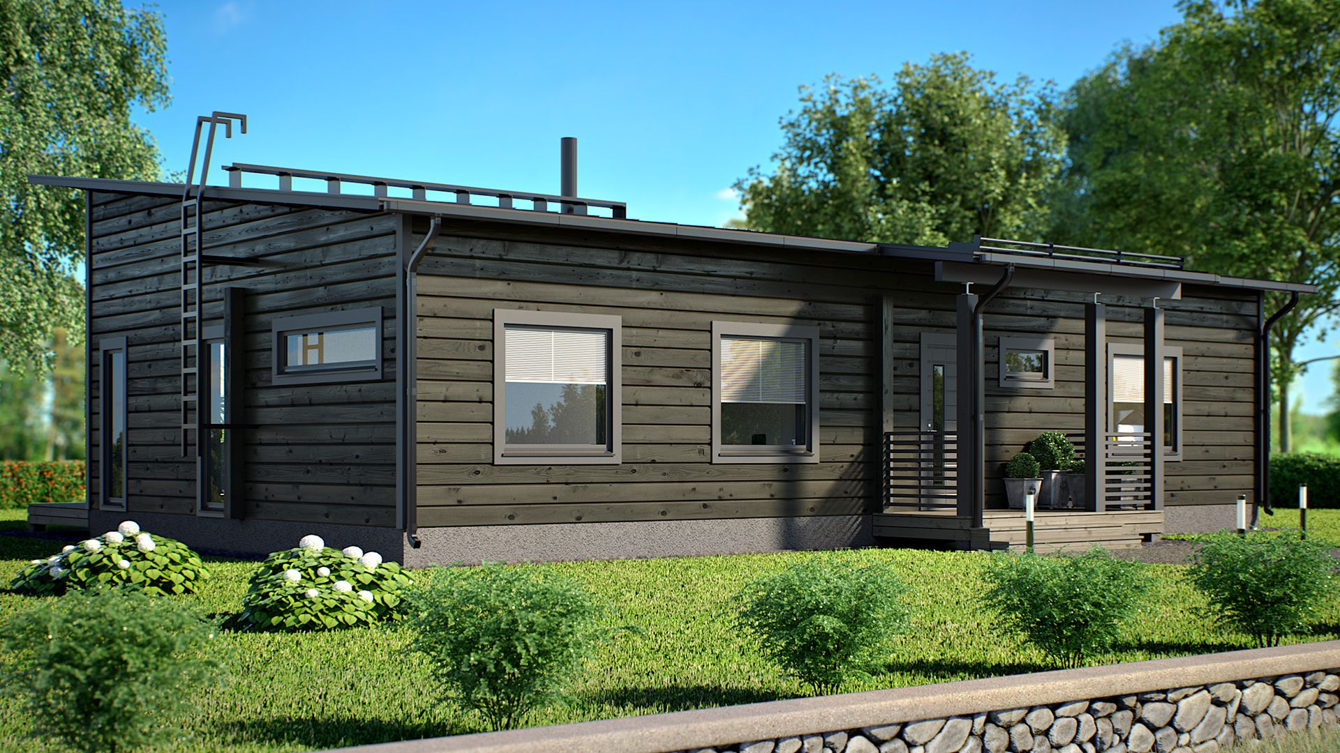 Все началось с идеи куба. У куба было множество стеклянных поверхностей. Внутри куба гостиная, кухня и столовая находятся в одном и том же открытом пространстве. В результате, появился бревенчатый дом уникального вида.