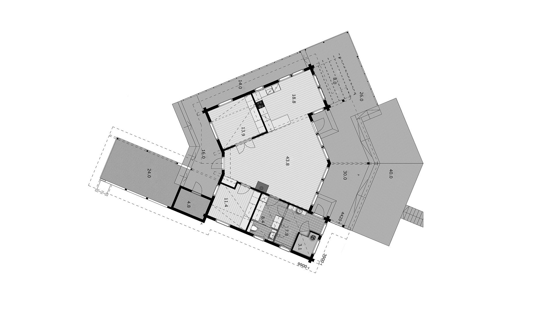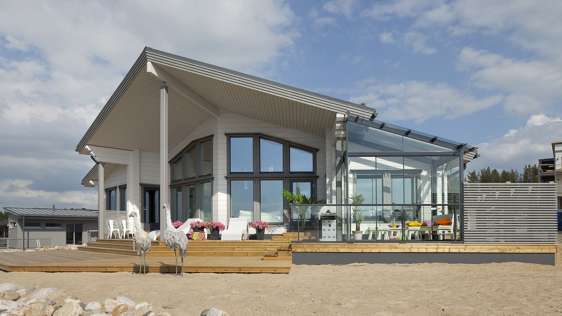 Площадь соответствуют стандартному проекту, но форма здания далека от оригинала. Открытая планировка гостиной Nuuna очаровали многих. Эта версия, оснащенная двумя спальнями, навесом для автомобиля и зимним садом на передней террасе, была признана победителем ярмарки домов отдыха в Калайоки в 2014 году.
