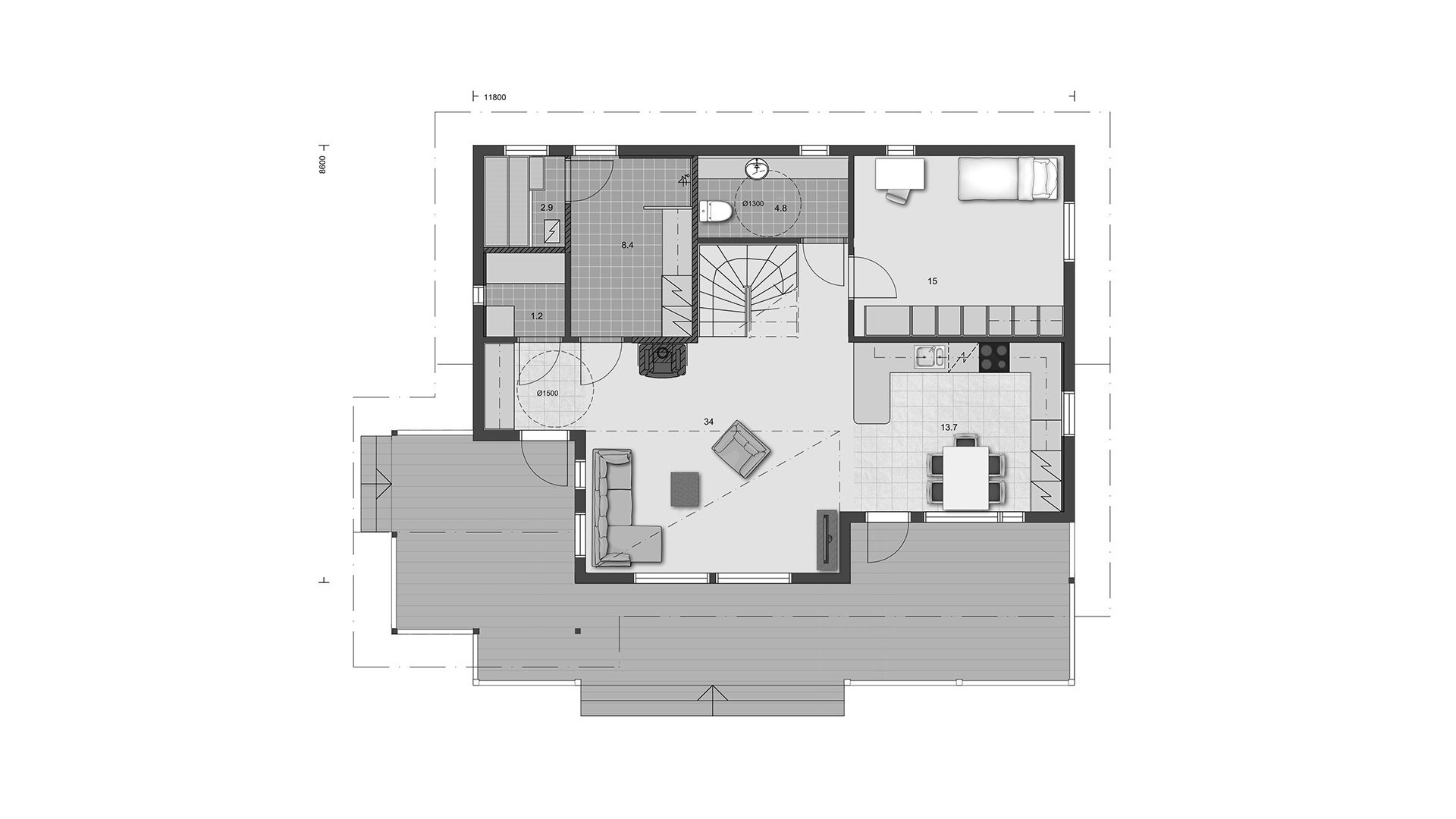 Большая терраса собирает тепло и свет солнца с утра до вечера и привлекает друзей, чтобы провести время вместе. Подсобное помещение большое, на кухне много шкафов и рабочего места. Террасы, безусловно, будут оценены садовниками благодаря своему внешнему виду.