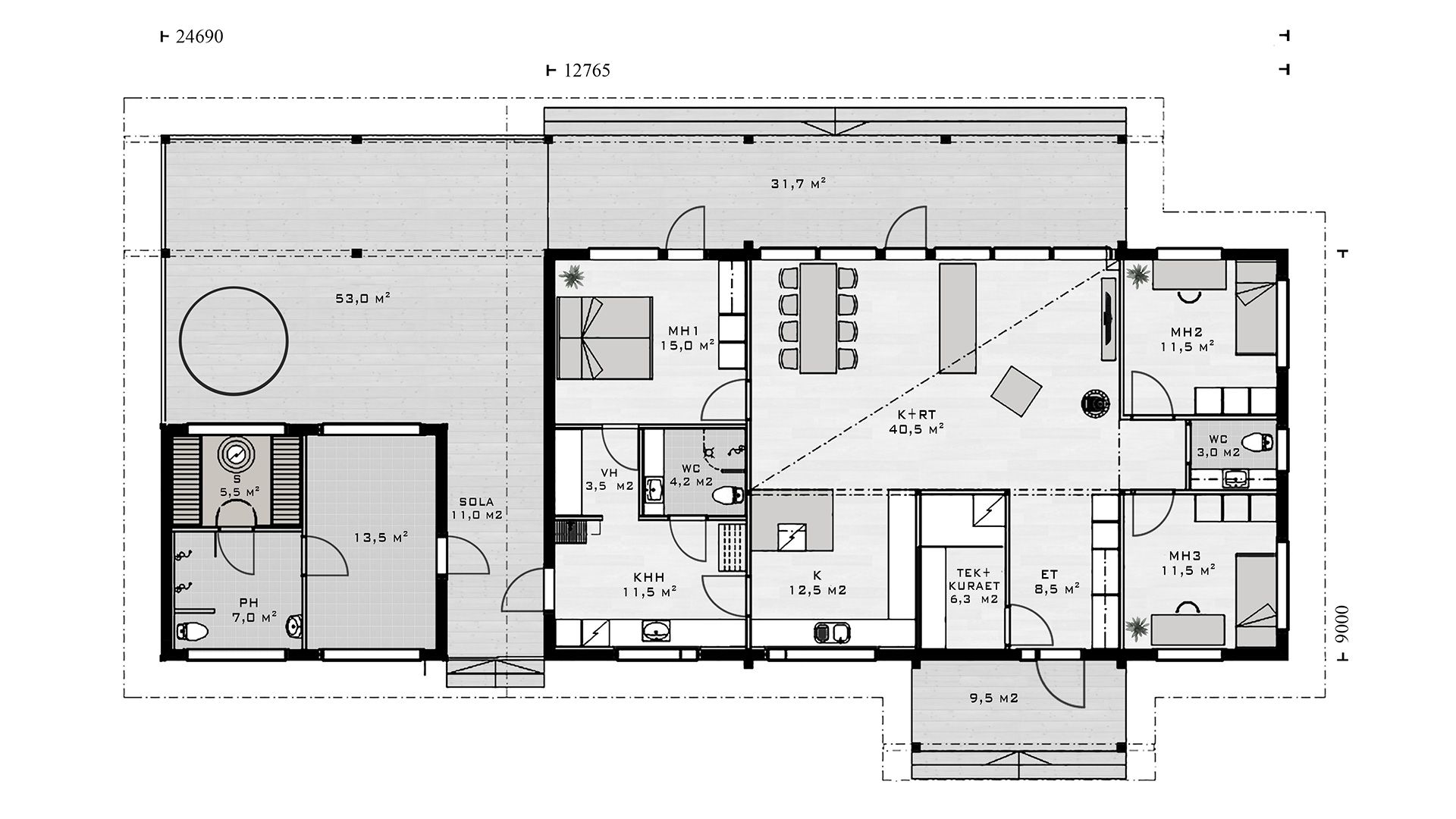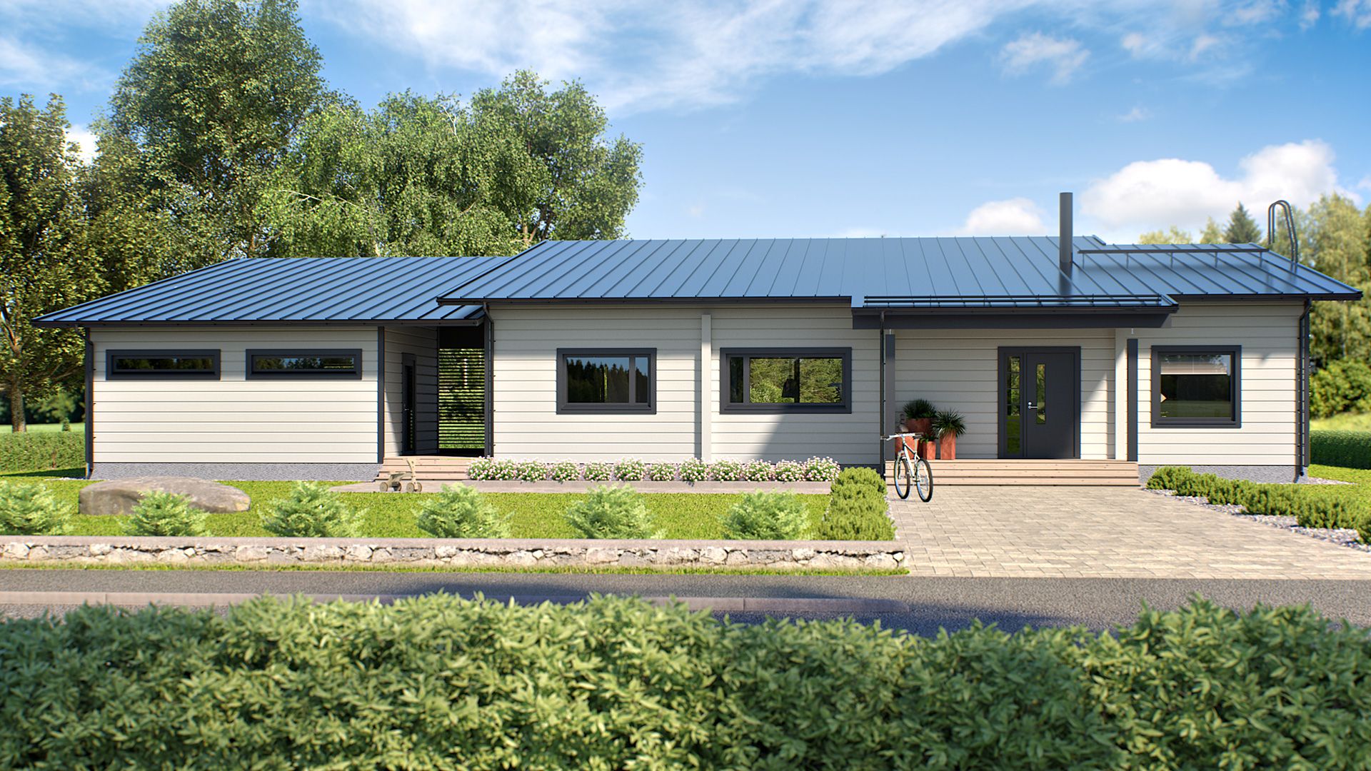 Все началось с идеи куба. У куба было множество стеклянных поверхностей. Внутри куба гостиная, кухня и столовая находятся в одном и том же открытом пространстве. В результате, появился бревенчатый дом уникального вида.