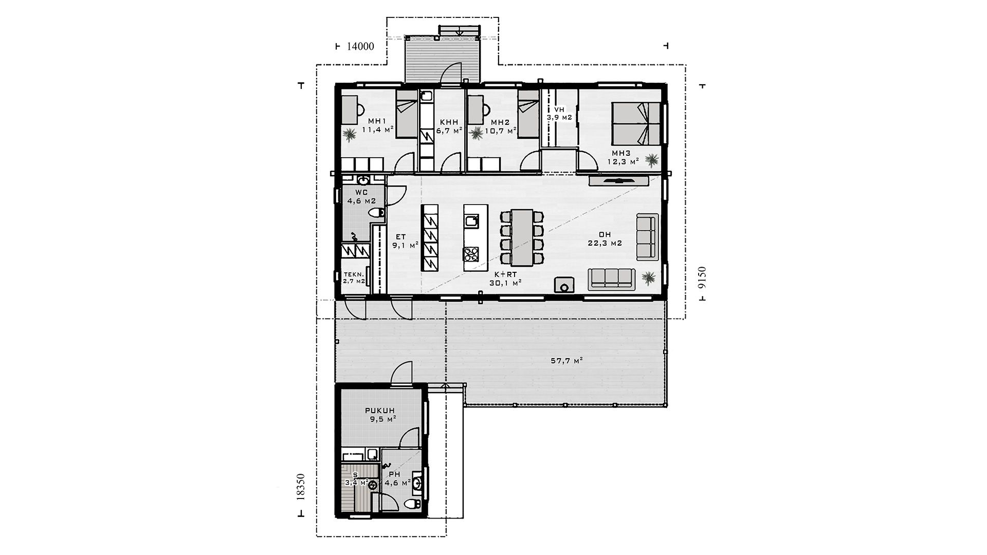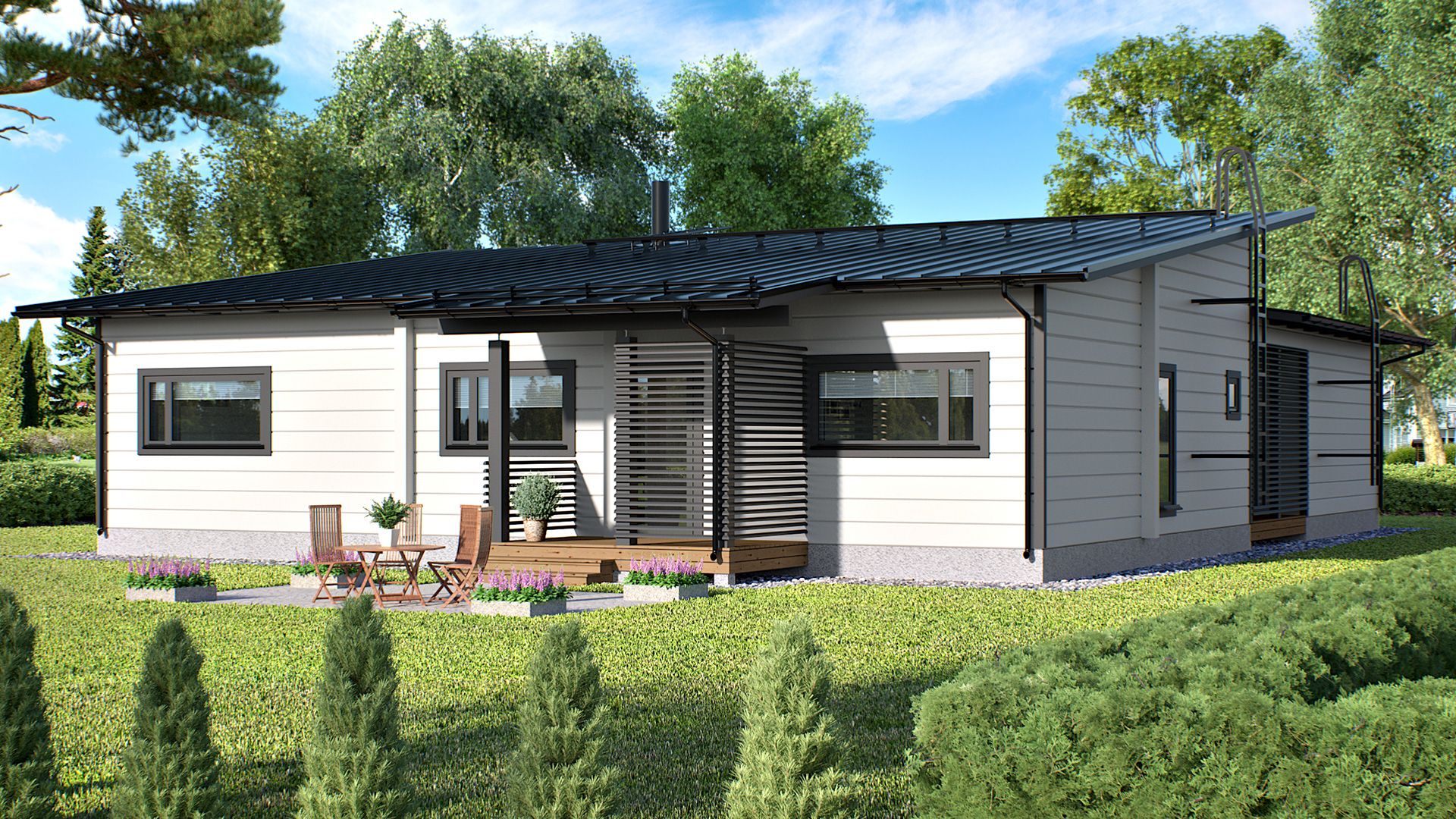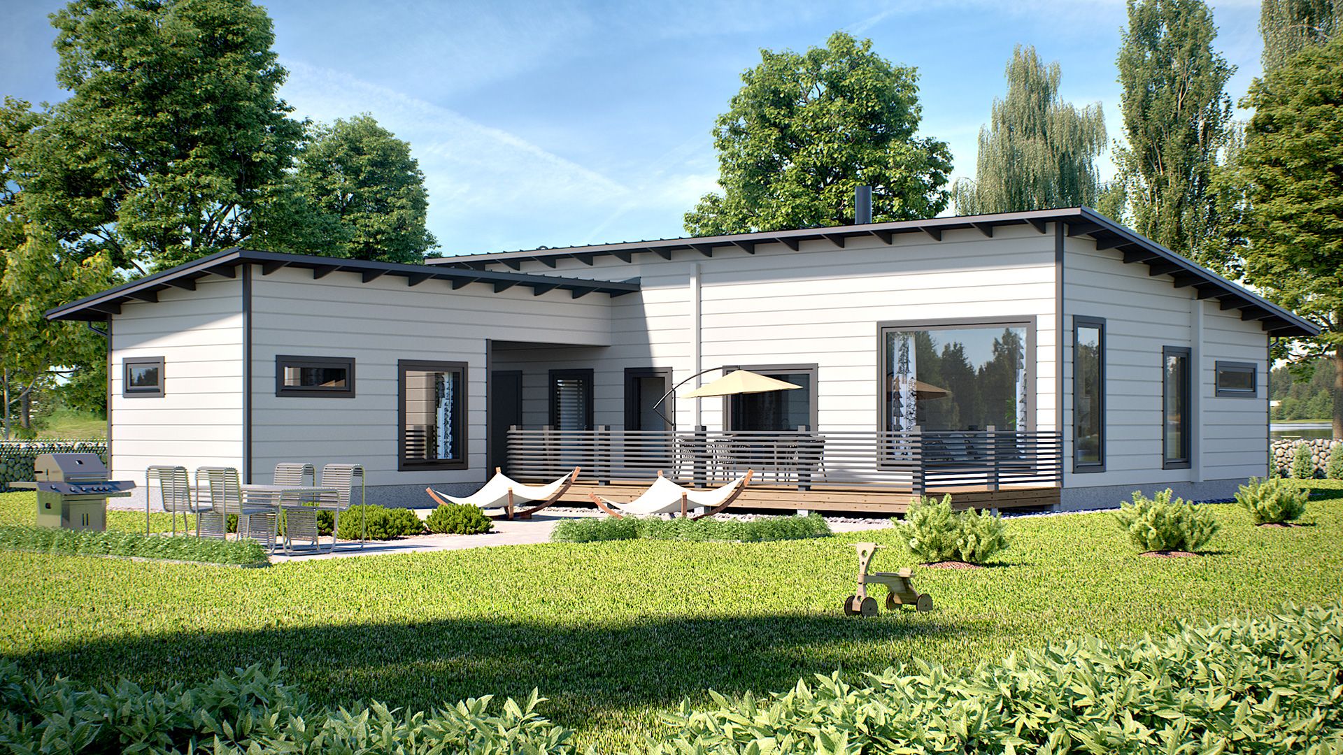 Все началось с идеи куба. У куба было множество стеклянных поверхностей. Внутри куба гостиная, кухня и столовая находятся в одном и том же открытом пространстве. В результате, появился бревенчатый дом уникального вида.