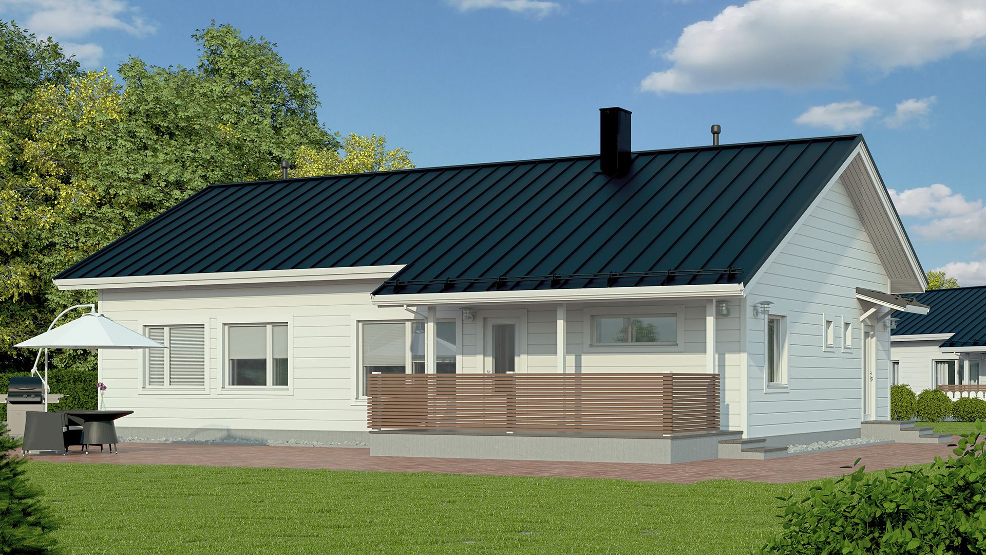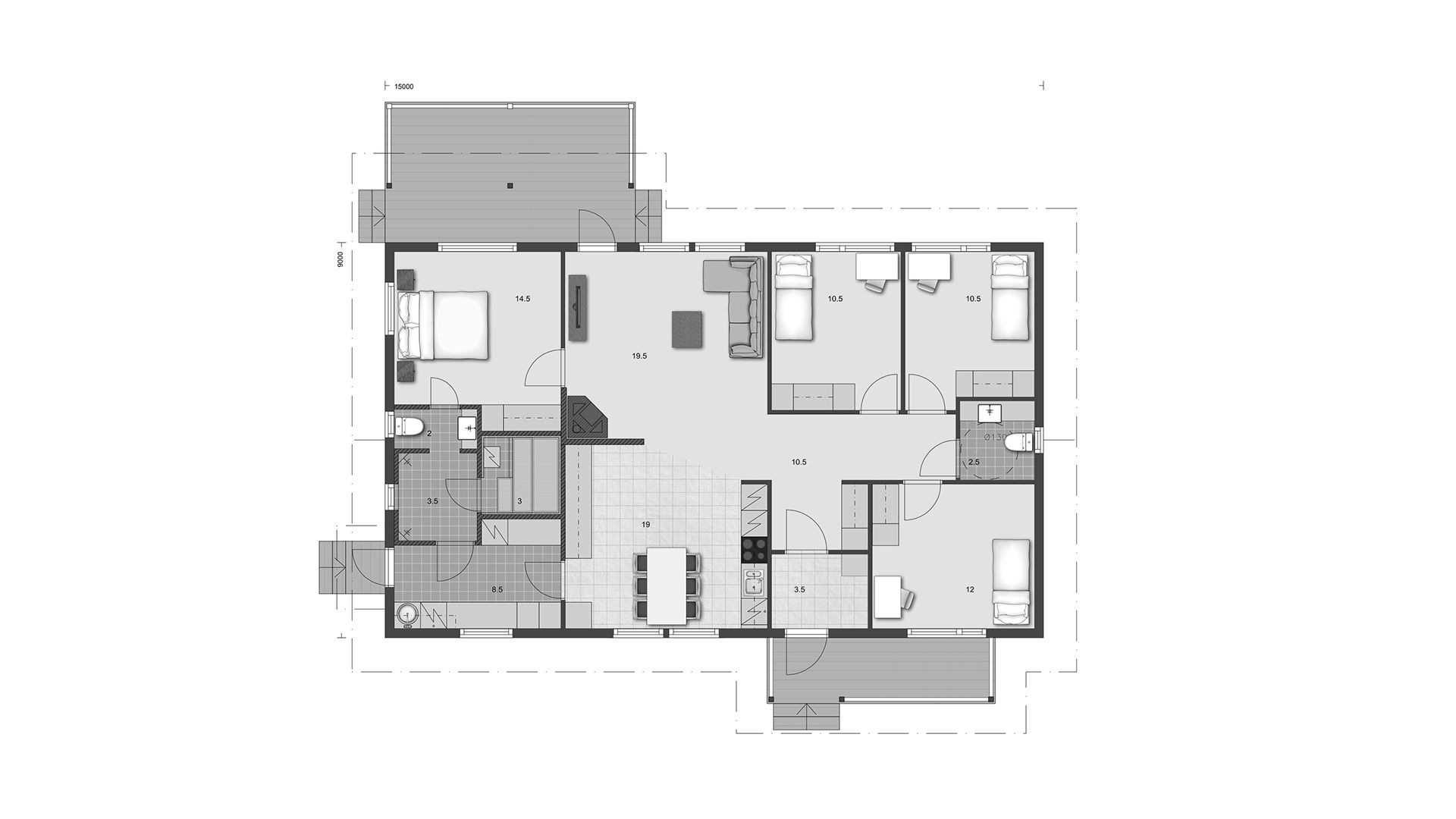 Это брусовой дом, где все на своих местах. Эффективная планировка позволила дому с четырьмя спальнями вписаться в небольшие размеры.